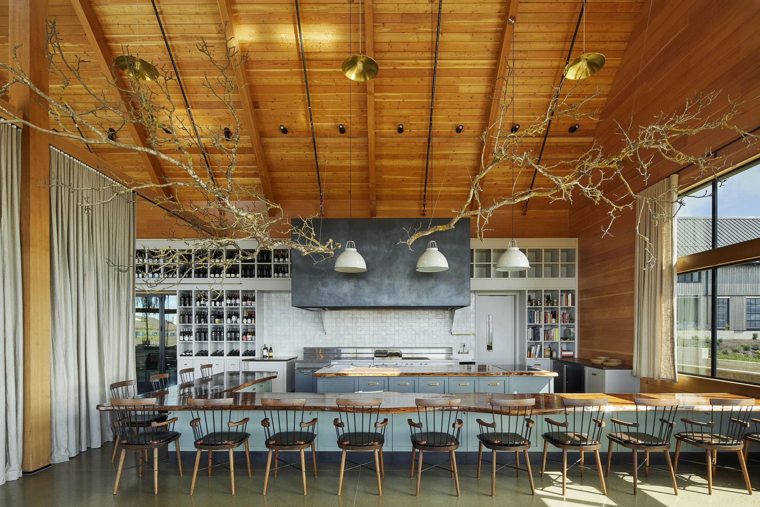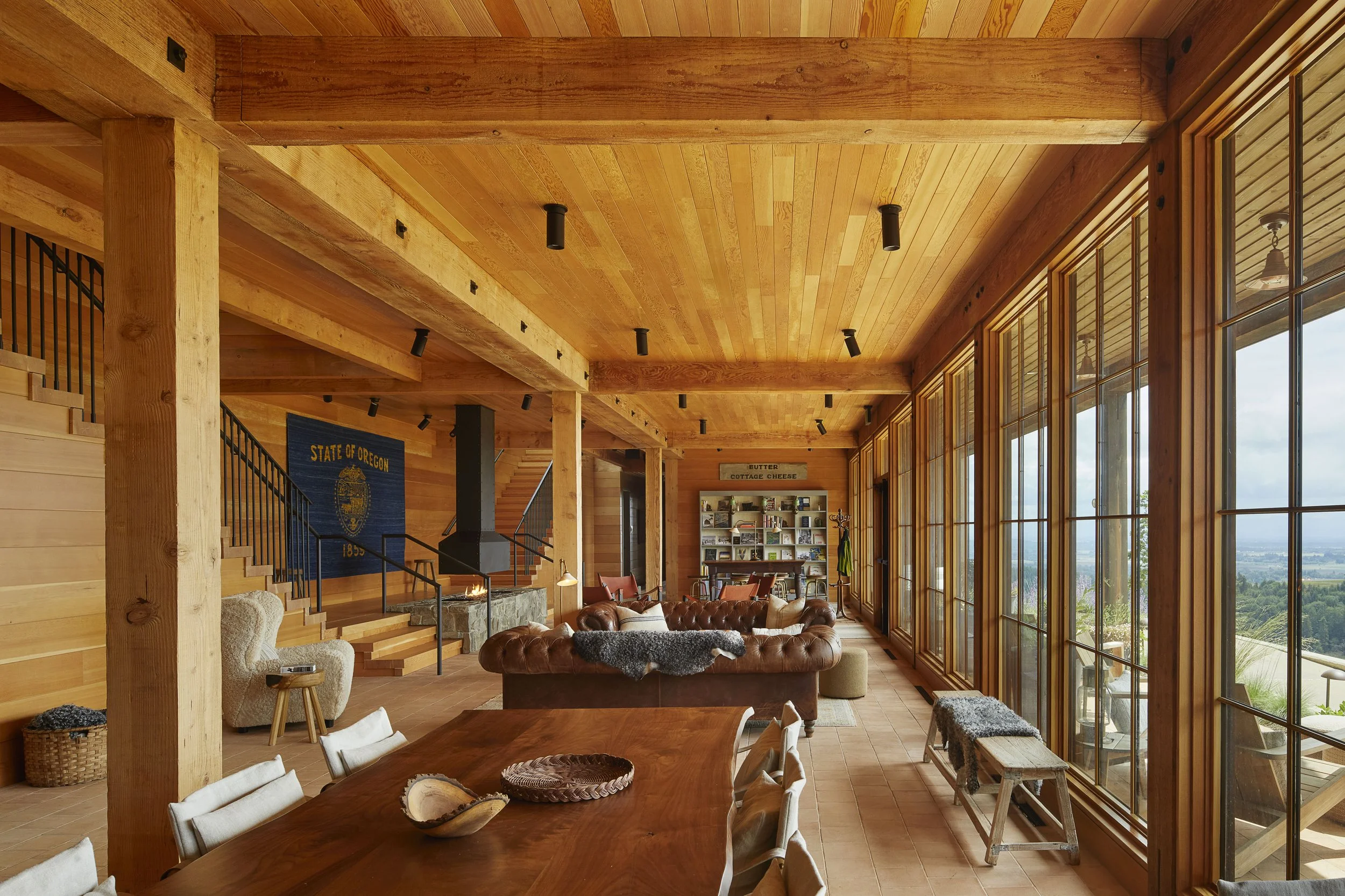 Situated on an active vineyard, the two new structures of the Grange are working buildings, supporting the agricultural activity this region has become well known for. Building exteriors of the winery and owner’s residence are clad in Western Red Cedar evocative of a 1920s barn, with interior finishes in Douglas Fir, White Oak, and blackened steel. The material choices reflect a commitment to authenticity of place, showcasing Oregon’s natural beauty.